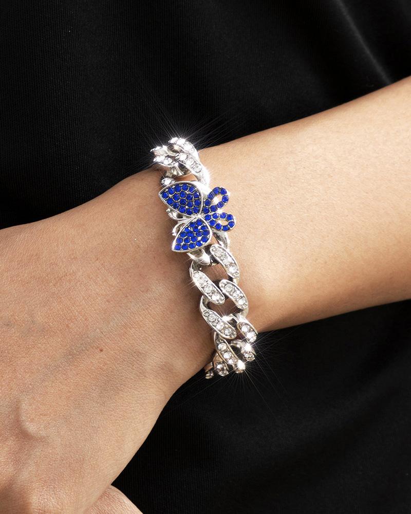 1PCS Rhinestone Butterfly Decor Chain Design Bracelet, Blue