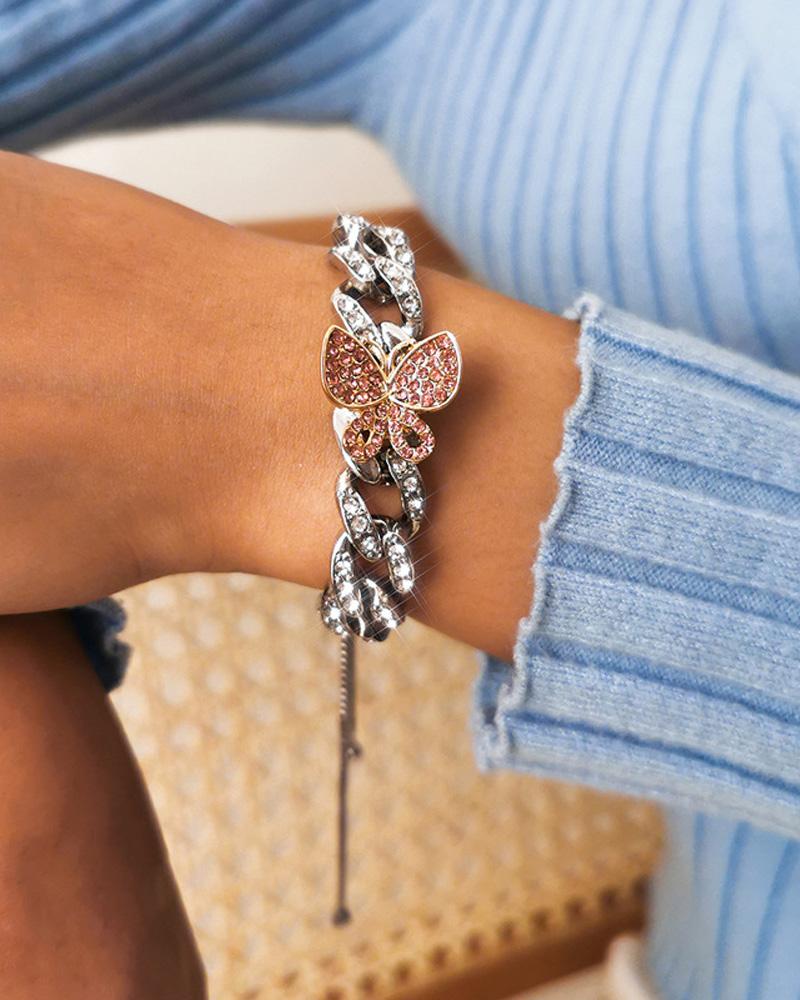 1PCS Rhinestone Butterfly Decor Chain Design Bracelet, Pink