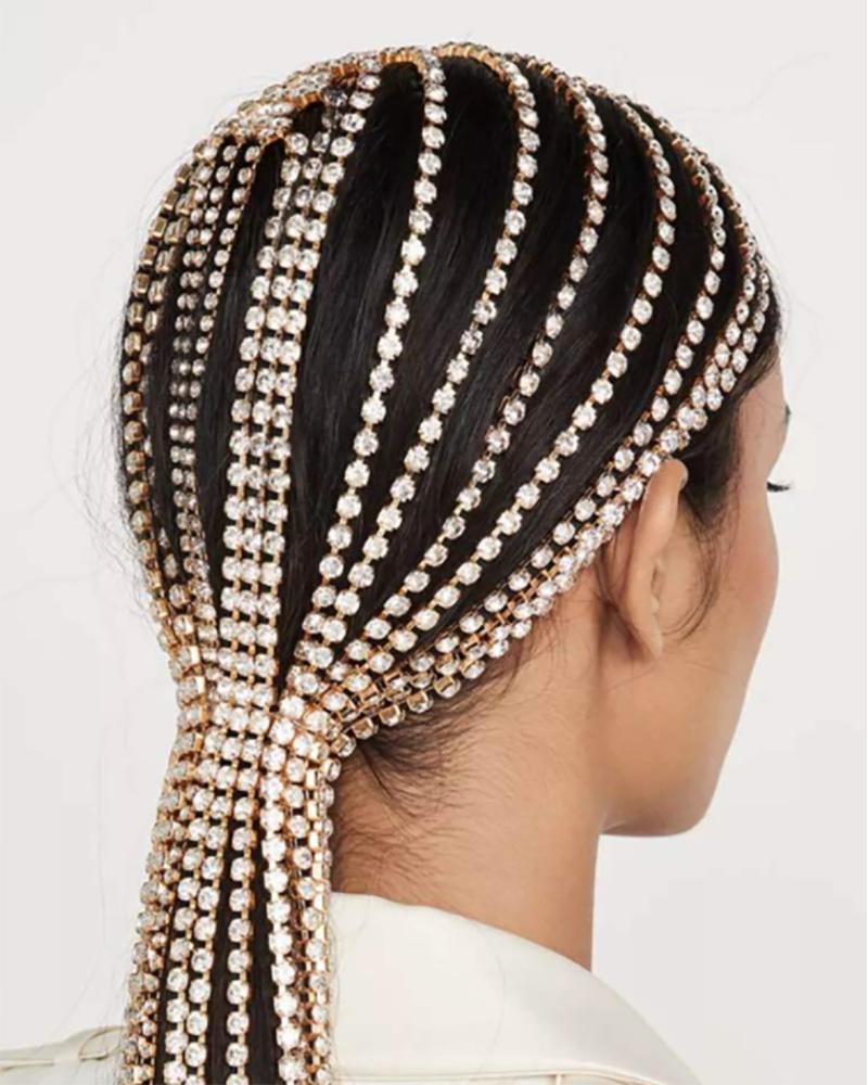 1PCS Rhinestone Tassel Design Hair Hoop, Gold