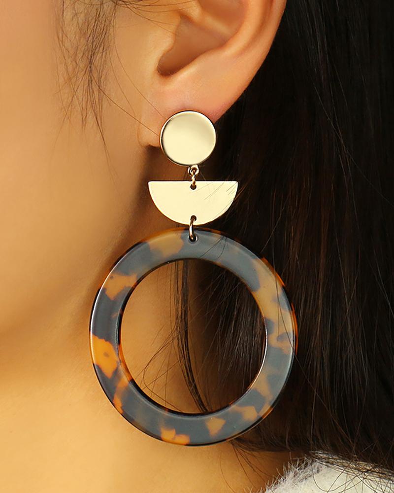 1Pair Cheetah Pattern Disc Round Drop Earrings, Leopard
