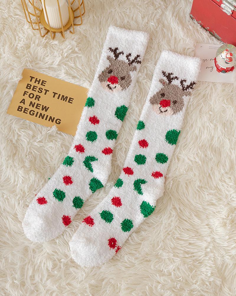 1Pair Christmas Santa Claus Pattern Over The Calf Fluffy Socks, Style4