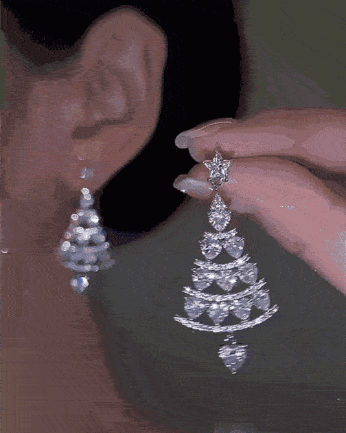 1Pair Christmas Tree Shaped Rhinestone Star Drop Earrings, Silver