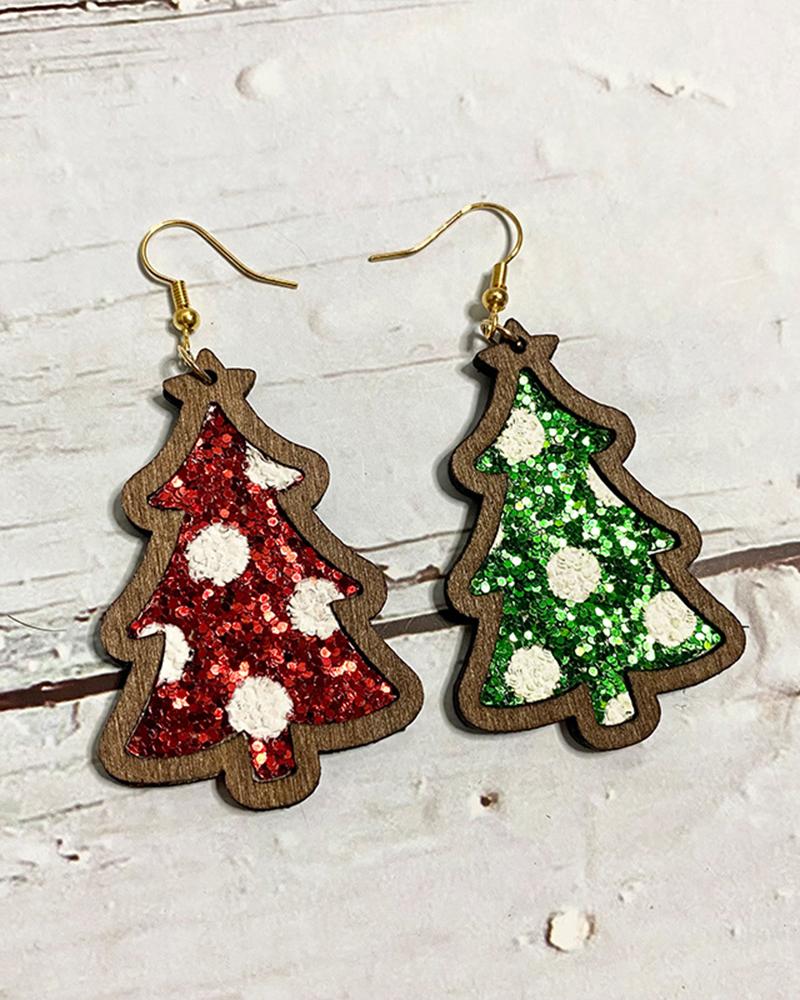 1Pair Christmas Tree Shaped Sequin Drop Earrings, Red