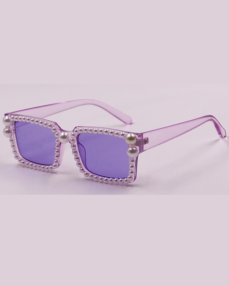 1Pair Fake Pearls Decor Rectangular Gradient Sunglasses, Purple