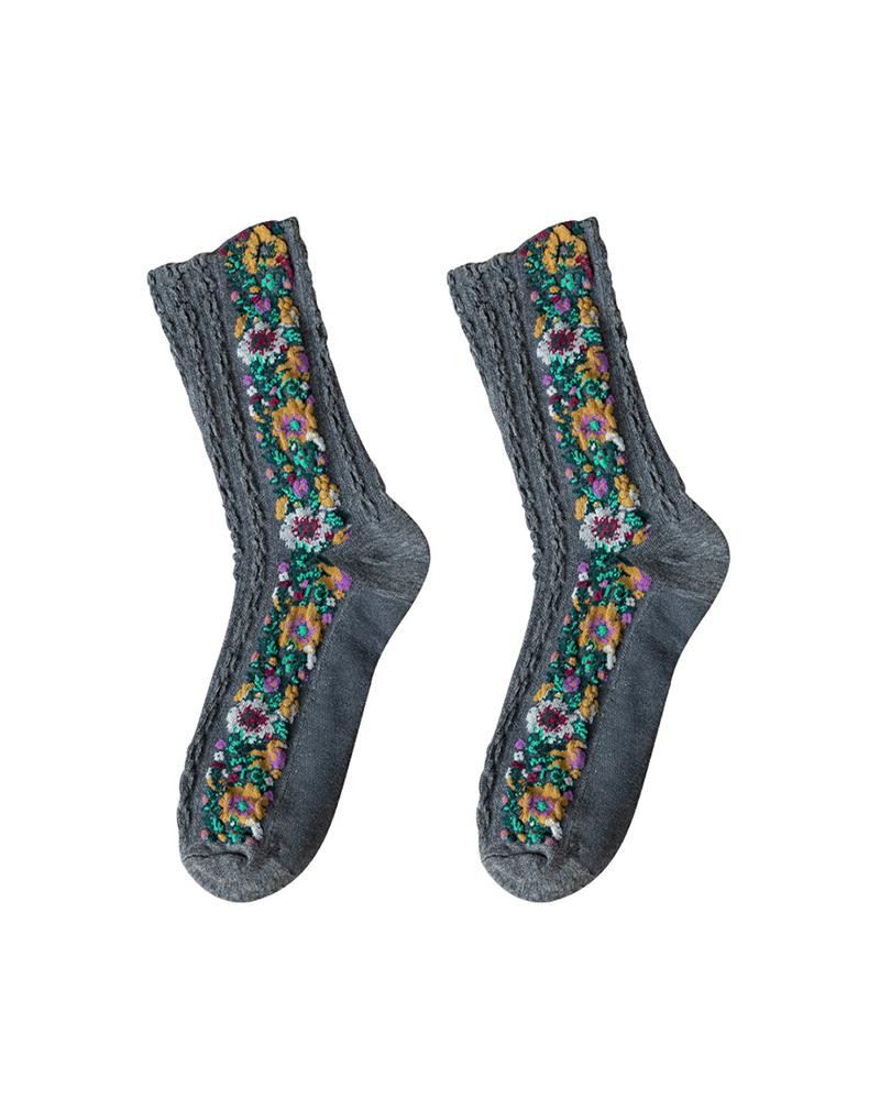 1Pair Floral Pattern Socks, Style3