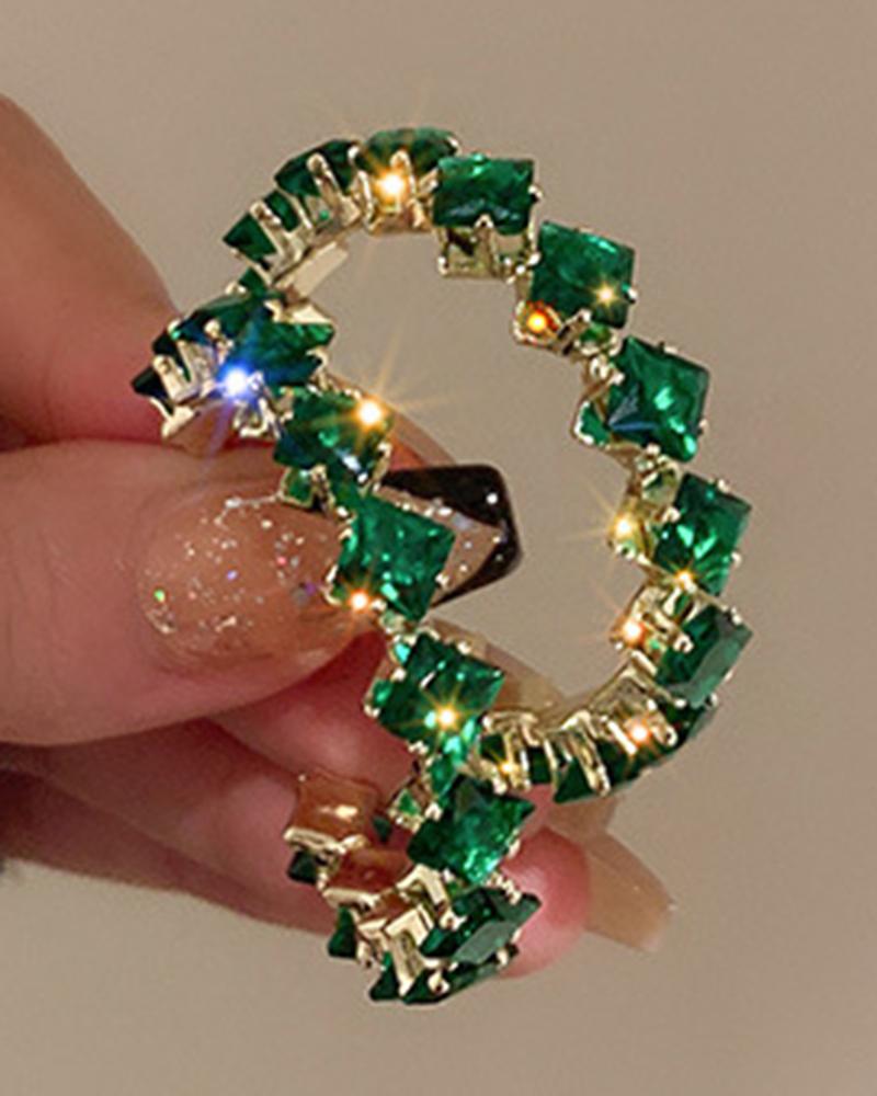 1Pair Geometric Crystal Pattern Hoop Earrings, Style4