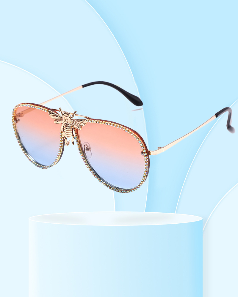1Pair Gradient Rhinestone Bee Pattern Trendy Pilot Sunglasses, Style2