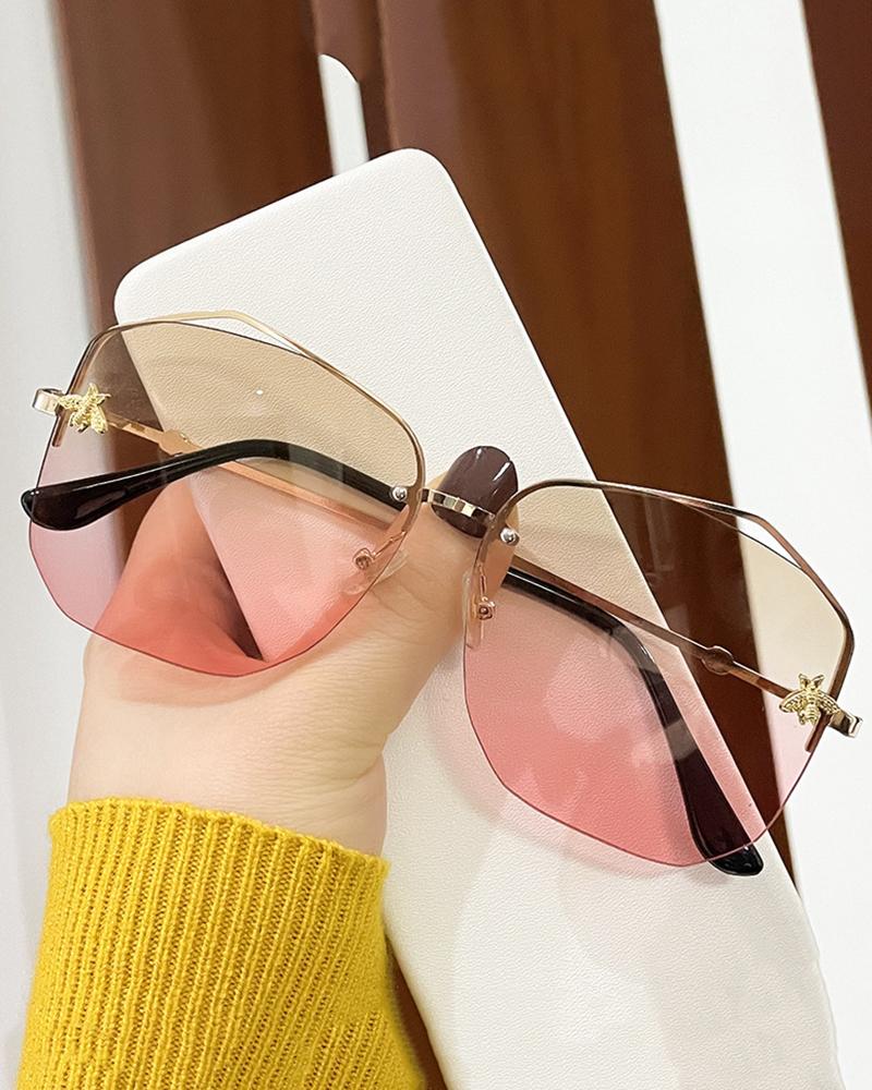 1Pair Half Metal Frame Bee Pattern Ombre Sunglasses, Style3