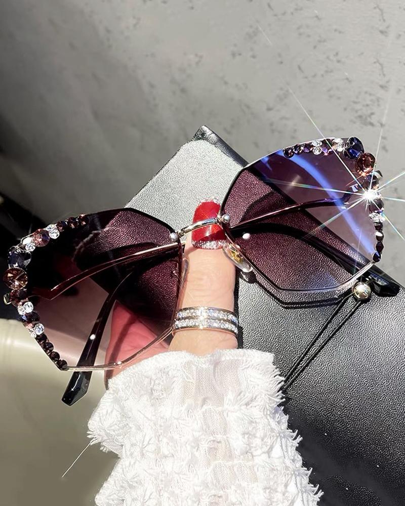 1Pair Irregular Frame Rhinestone Decor Sunglasses, Style3