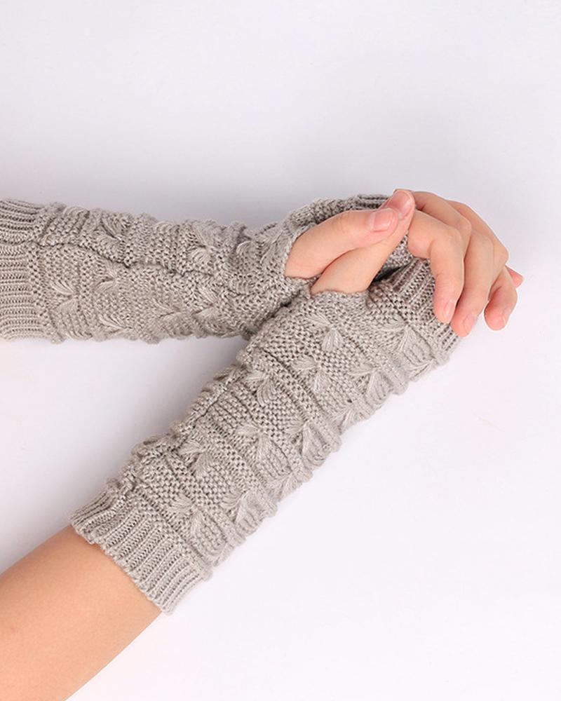 1Pair Knit Fingerless Gloves, Light gray