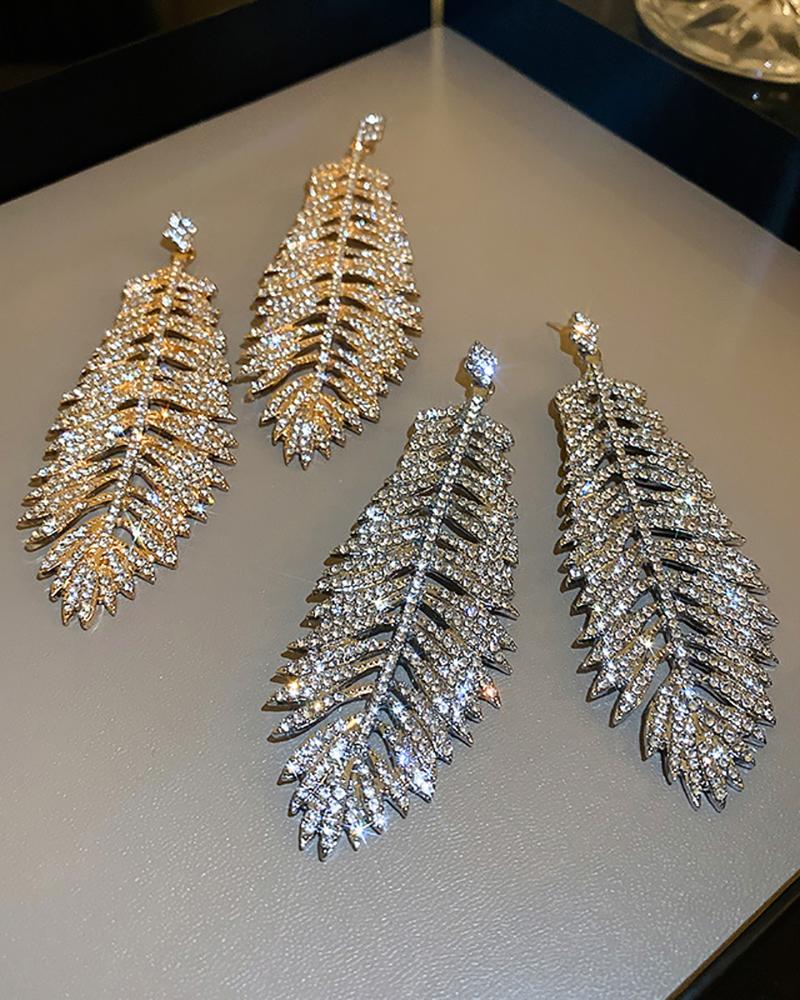 1Pair Leaf Pattern Rhinestone Decor Earrings, Silver