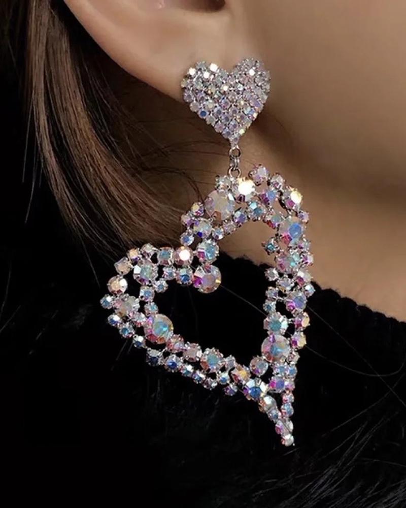 1Pair Multi Rhinestone Heart Shaped Earrings, Style1