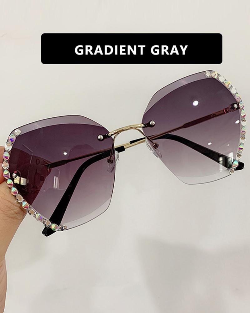 1Pair Ombre Rimless Rhinestone Geometric Metal Frame Sunglasses, Gray