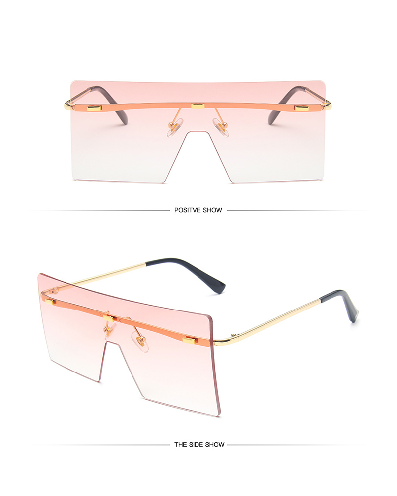 1Pair Oversized Frame Rimless Sunglasses, Pink