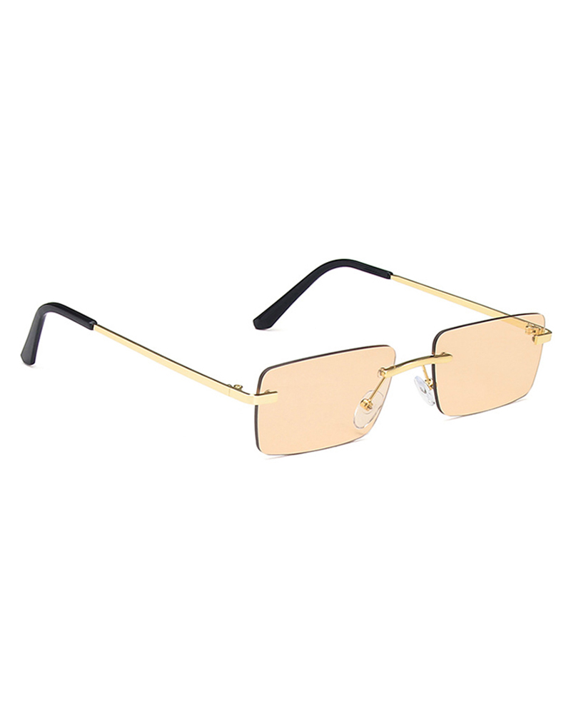 1Pair Rectangle Lens Rimless 100% UV Protection Sunglasses, Brown