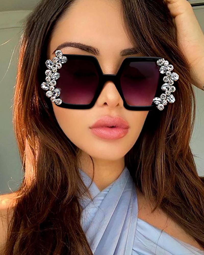 1Pair Retro Rhinestone Irregular Frame Sunglasses, Black