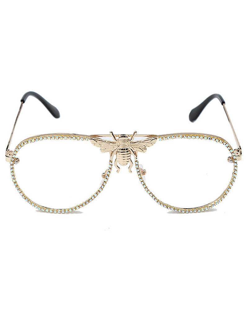 1Pair Rhinestone Bee Pattern Trendy Pilot Sunglasses, Clear