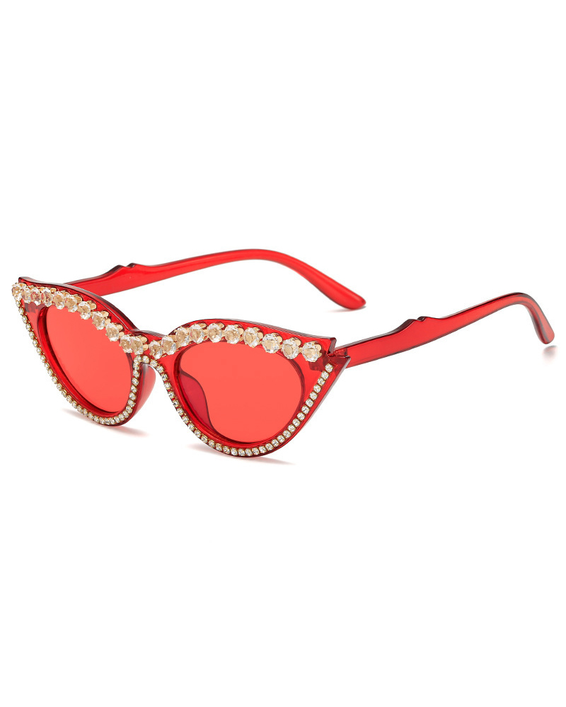 1Pair Rhinestone Cat Eye Frame Sunglasses, Red