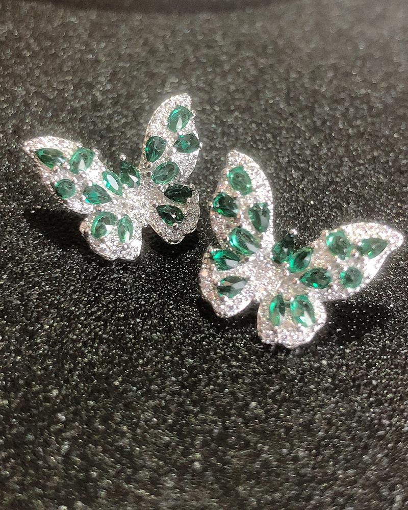 1Pair Rhinestone Decor Butterfly Pattern Earrings, Green