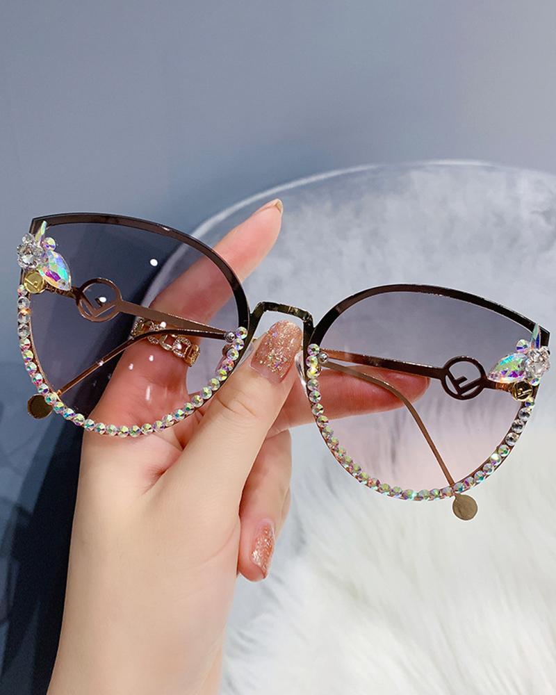 1Pair Rhinestone Decor Retro Tinted Lens Cat Eye Frame Sunglasses, Style4