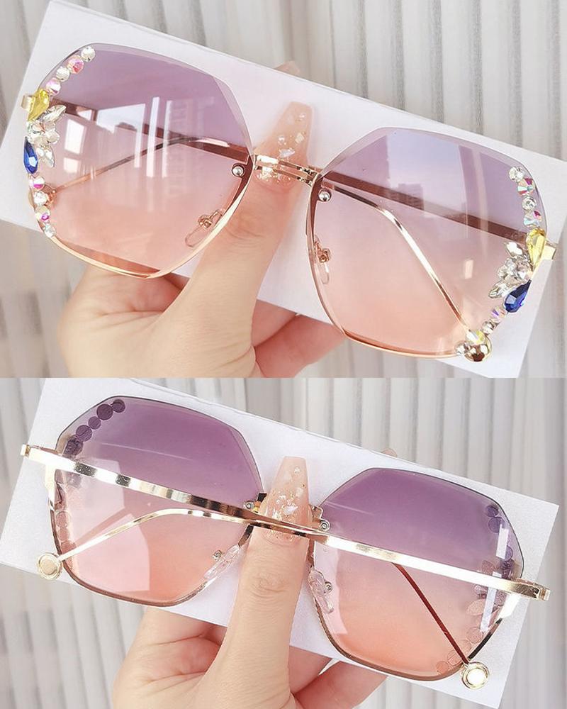 1Pair Rhinestone Decor Rimless Ombre Sunglasses, Style6