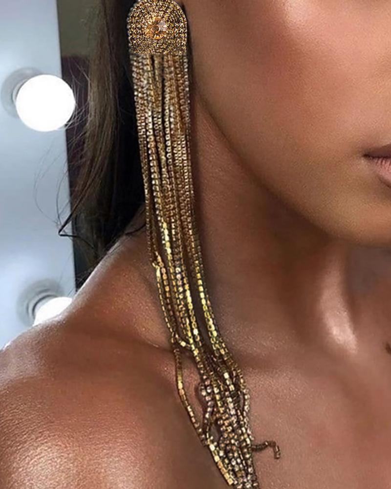 1Pair Rhinestone Decor Tassel Drop Earrings, Gold