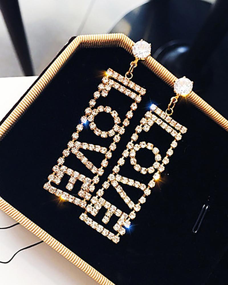 1Pair Rhinestone Letter Pattern Drop Earrings, Style1