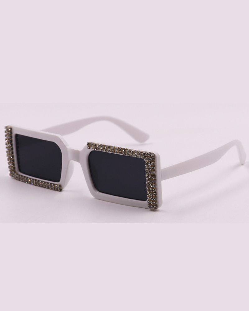1Pair Rhinestone Rectangular Trendy Tinted Sunglasses, White