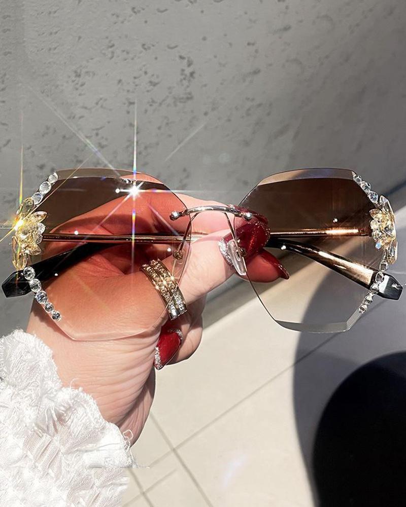 1Pair Rhinestone Rimless Frame Tinted Lens Sunglasses, Style2