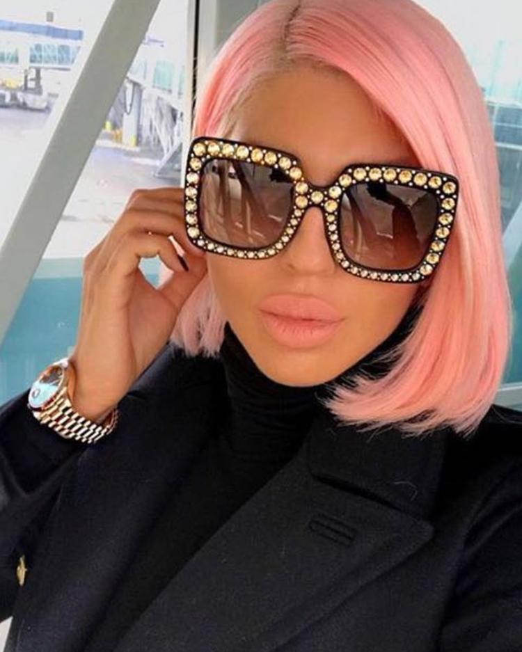 1Pair Rhinestone Square Frame Sunglasses, Gold