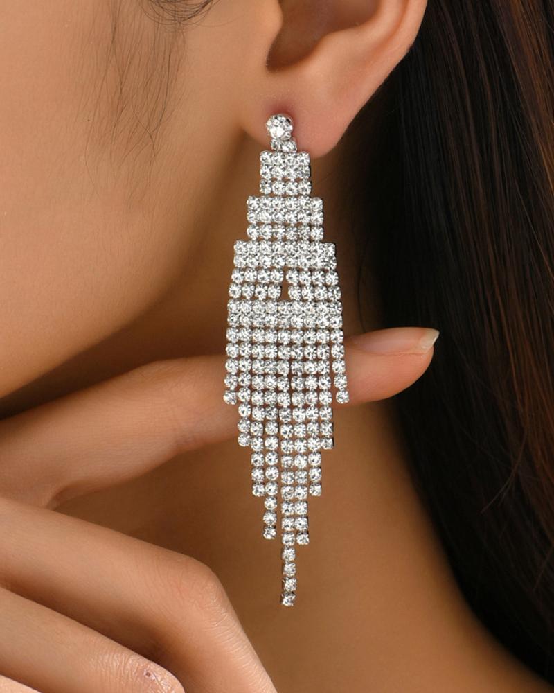1Pair Rhinestone Tassel Design Drop Earrings, White