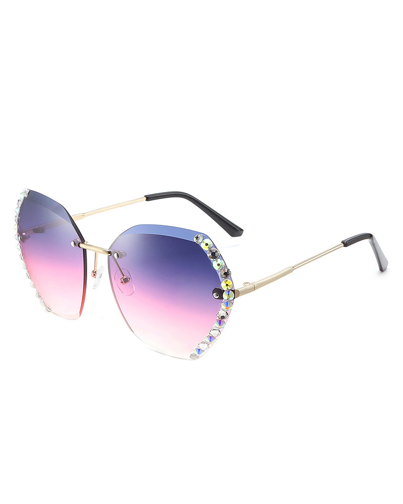 1Pair Rhinestone Tinted Lens Irregular Rimless Frame Sunglasses, Style3