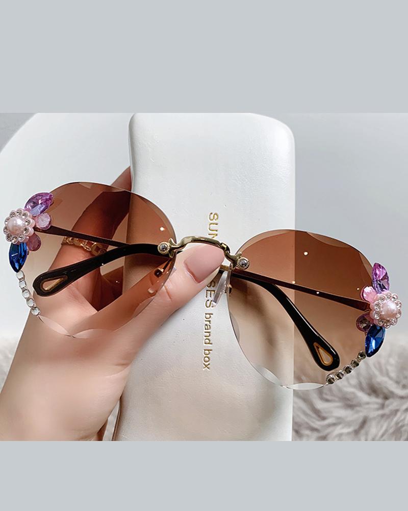 1Pair Rhinestone Tinted Lens Rimless Frame Sunglasses, Style1