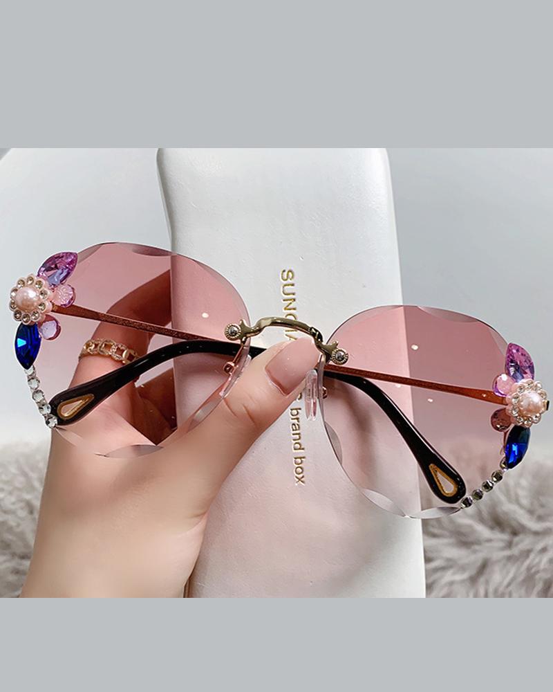 1Pair Rhinestone Tinted Lens Rimless Frame Sunglasses, Style4