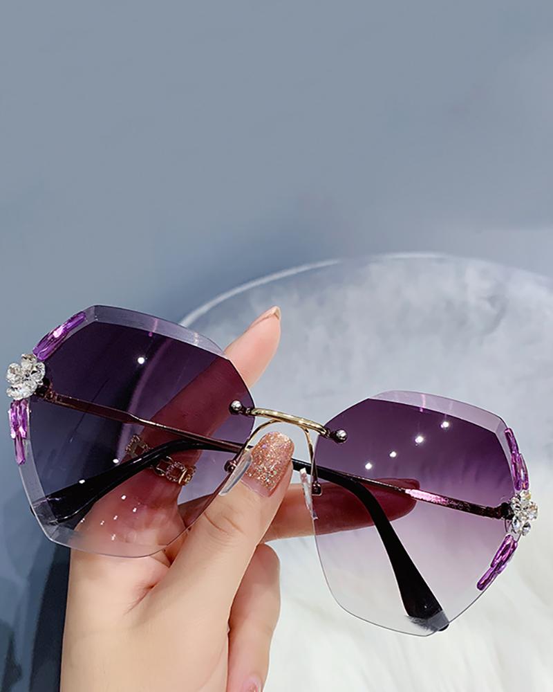 1Pair Rimless Irregular Frame Rhinestone Sunglasses, Style2