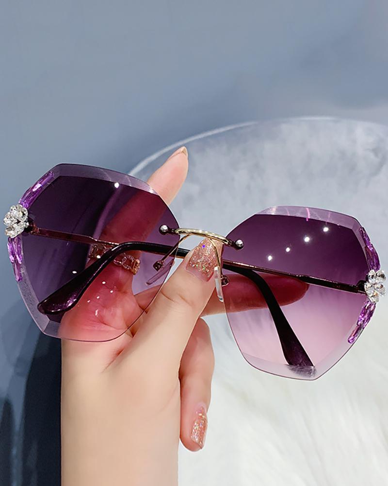 1Pair Rimless Irregular Frame Rhinestone Sunglasses, Style3