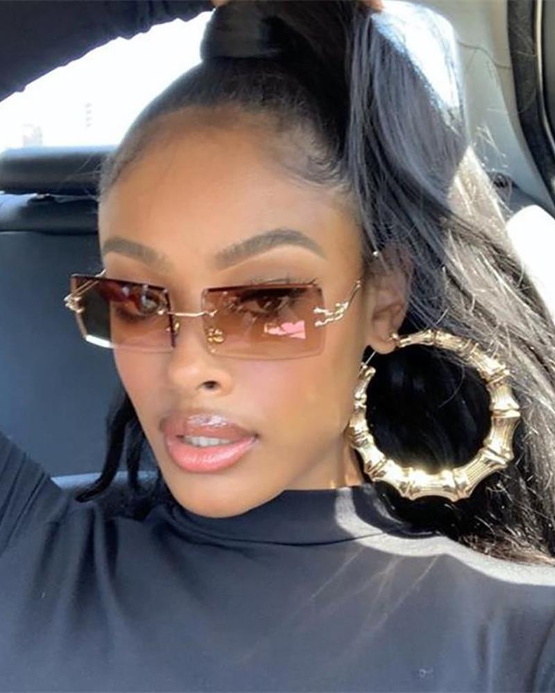 1Pair Rimless Rectangle Tinted Lens Sunglasses, Coffee