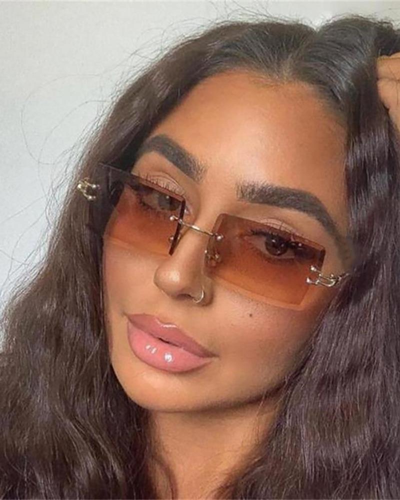 1Pair Rimless Rectangle Tinted Lens Sunglasses, Orange