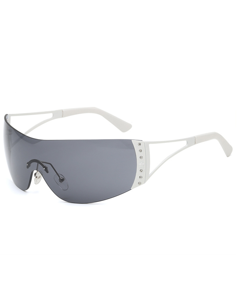 1Pair Rimless Rhinestone Tinted Shield Sunglasses, Style2