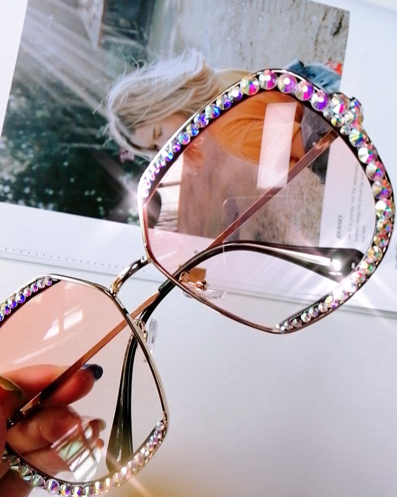 1Pair Square Frame Ombre Rhinestone Decor Sunglasses, Tan
