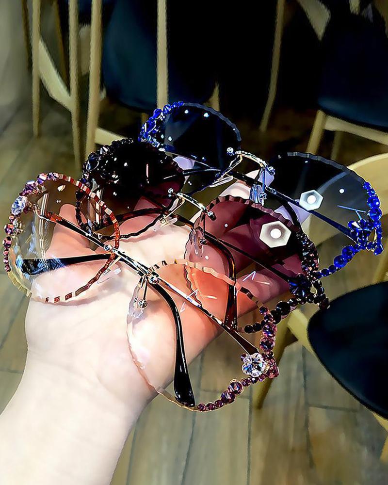 1Pair Square Shaped Rimless Frame Rhinestone Tinted Lens Sunglasses, Style1