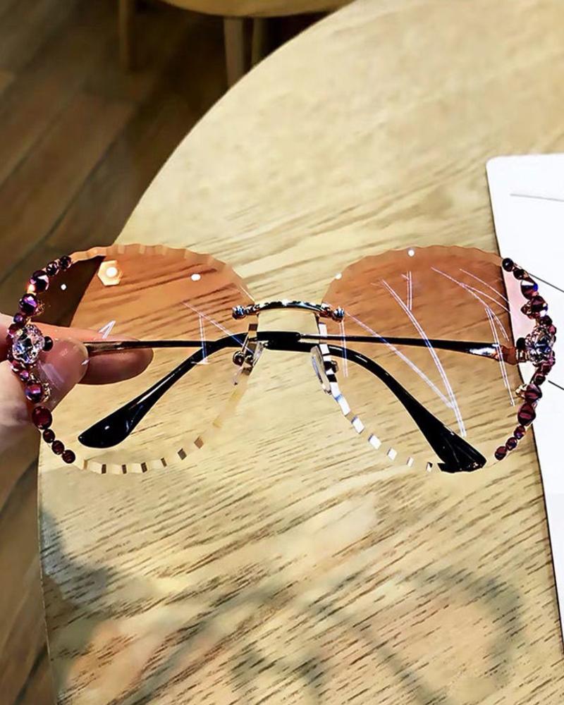 1Pair Square Shaped Rimless Frame Rhinestone Tinted Lens Sunglasses, Style3