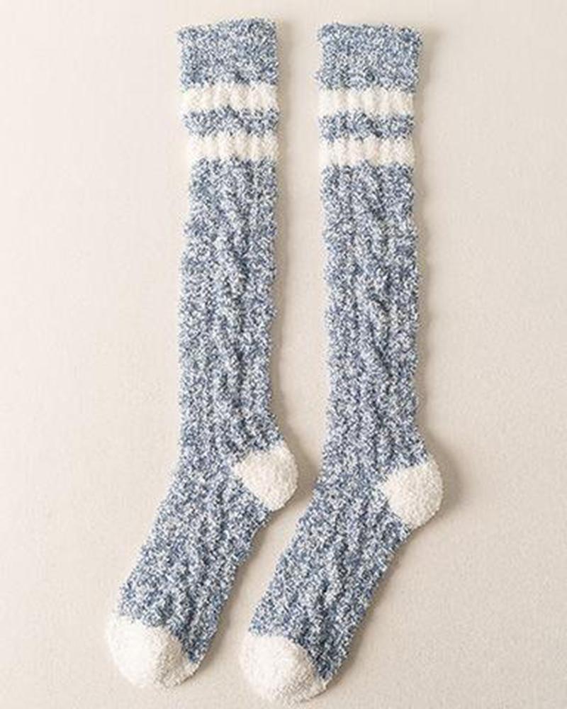 1Pair Striped Contrast Paneled Fuzzy Thermal Socks, Style2