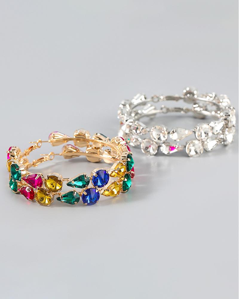 1Pair Waterdrop & Round Shaped Rhinestone Hoop Earrings, Silver