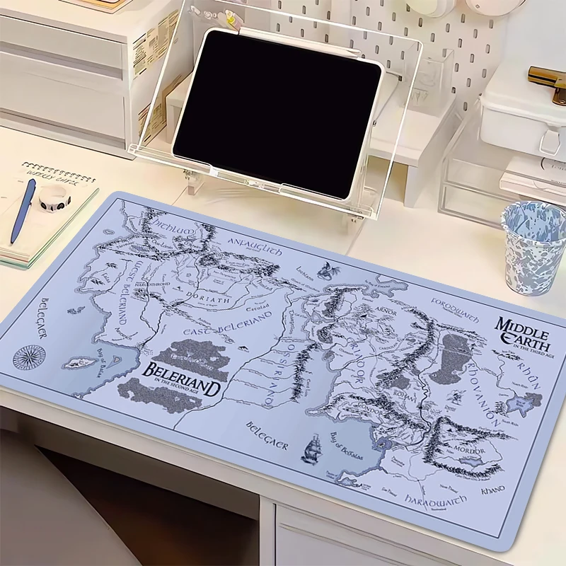 1Pcs Mouse Pad Game World Map And Terrain Extended Gaming Mousepad Desktop Mat With Stitched Non-Slip Rubber Base Keyboard Pad