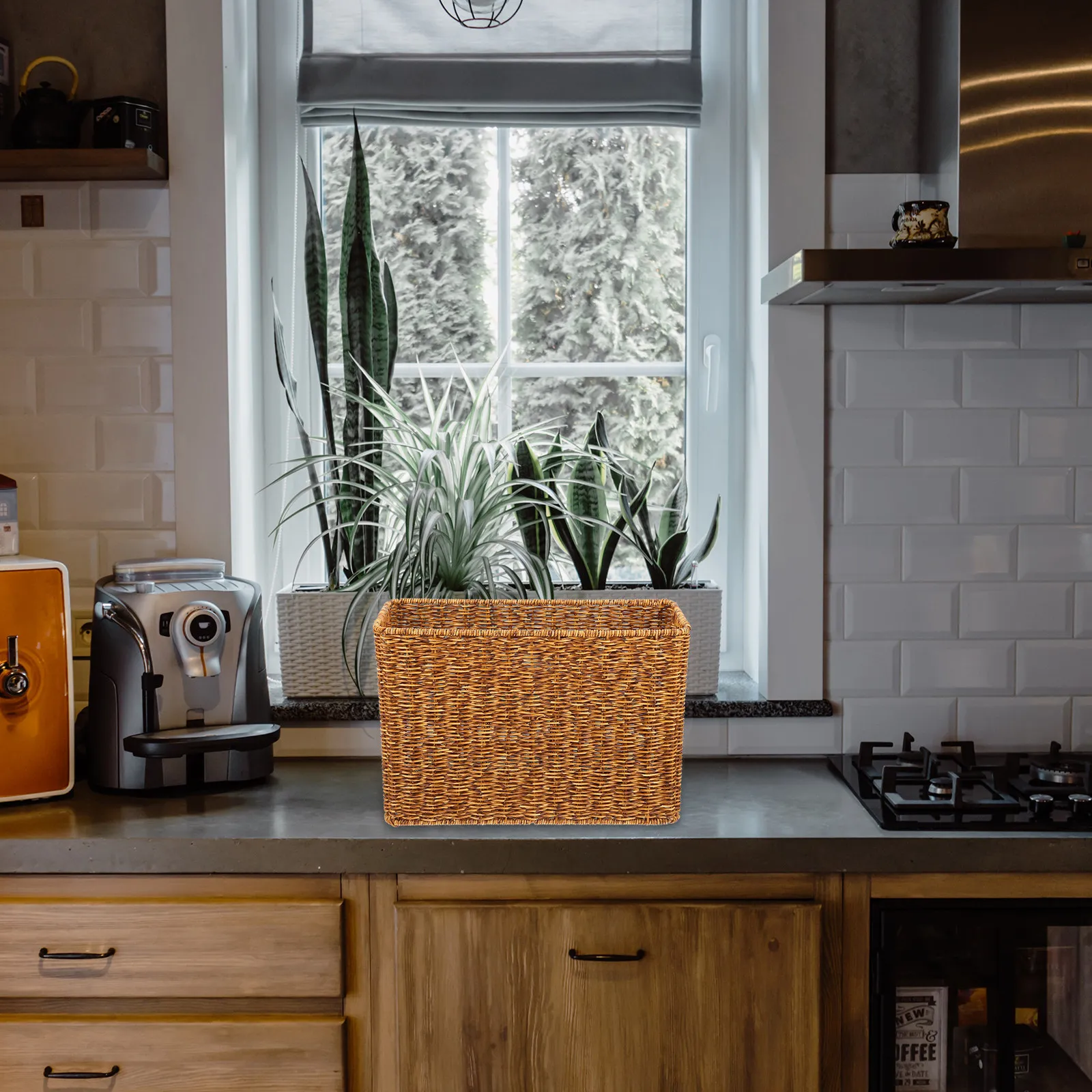 1Pcs Multi-Function Magazine Storage Basket Rectangular Woven Household Storage Container Sundries Organizing Basket Decorative