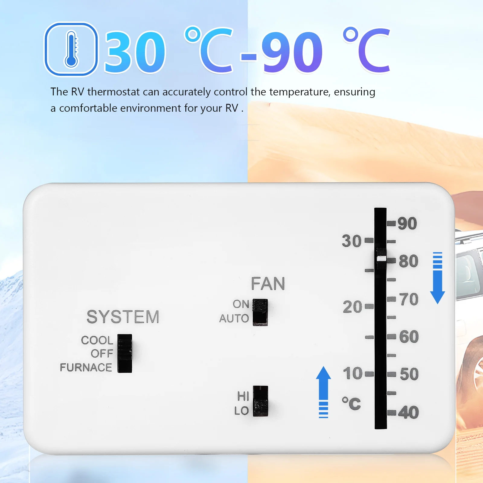 1Set Camper Thermostat Replacement Analog Rv Temperature Controller Wall Mount Heat Cool Sturdy ABS Fast Setup Comfort Control