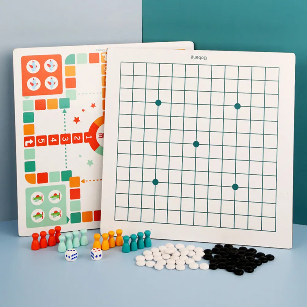 1Set Family Interactive Chess Set Smooth Wood Flying Chess with Five-in-A-Row Board Game for Children Intelligence Development