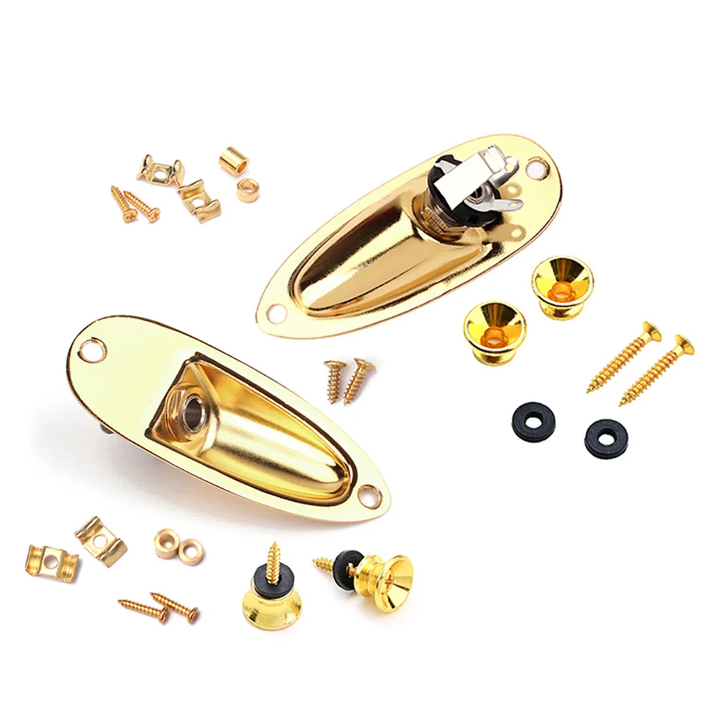 1Set Metal Guitar Strap Buttons String Tree Retainer for Electric Guitar Jack Socket Plate Anti- Easy Installation