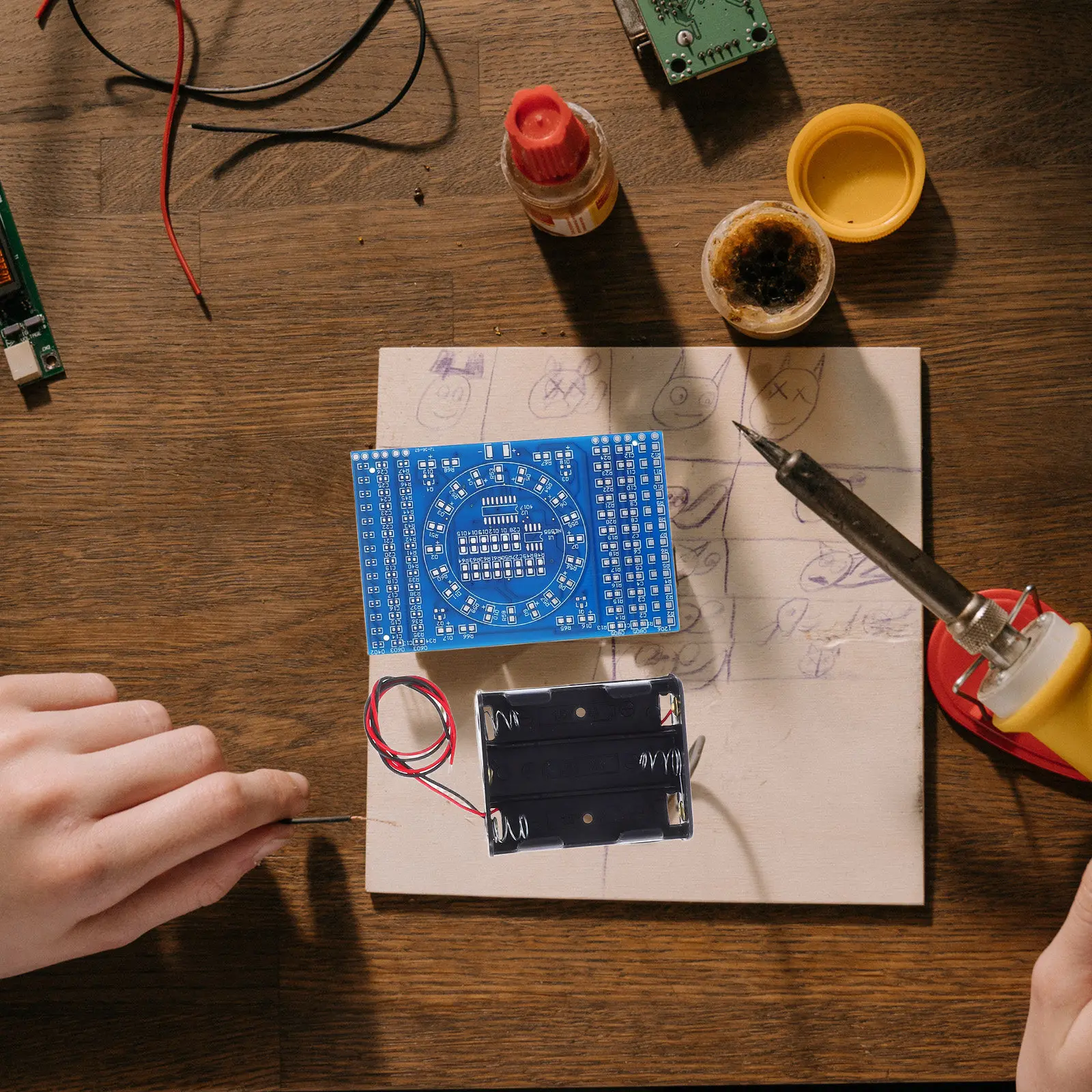 1Set Solder Practice Board Kit with Rotating Water Light Effect Design Electronic Soldering Training Kit for DIY Circuit